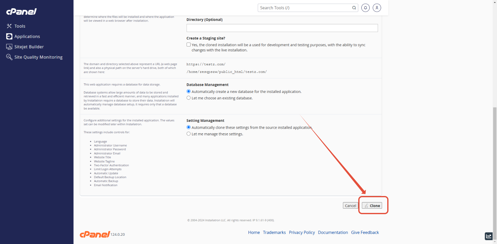 - กด Clone เพื่อทำการ Clone ข้อมูลไปยังชื่อ Domain ที่ต้องการ